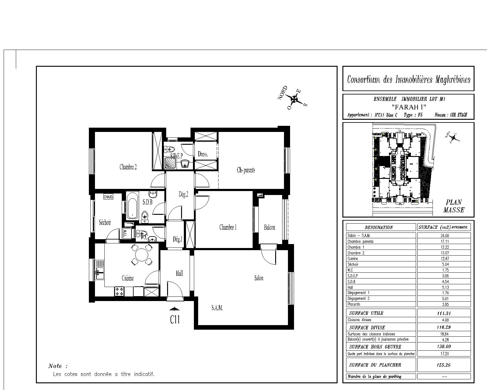 Surface Couverte : 155 m²