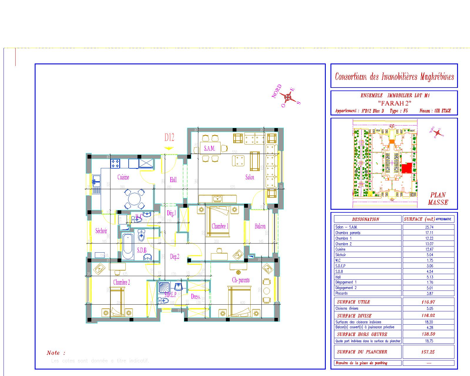 Surface Totale : 157.25 m²