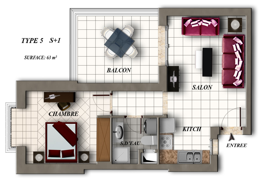 Surface Couverte : 63 m²
