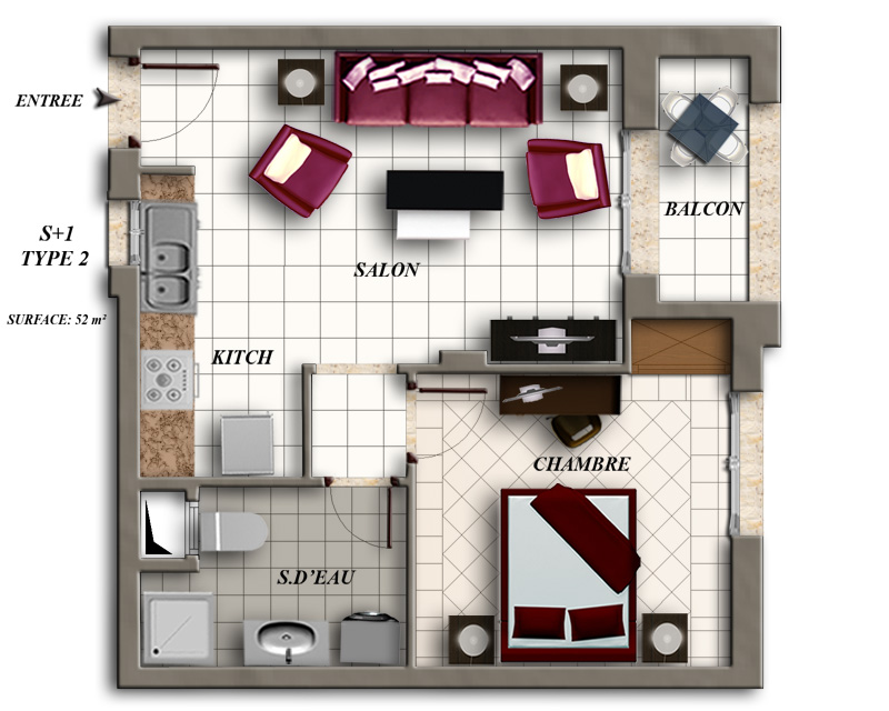 Surface Couverte : 52 m²