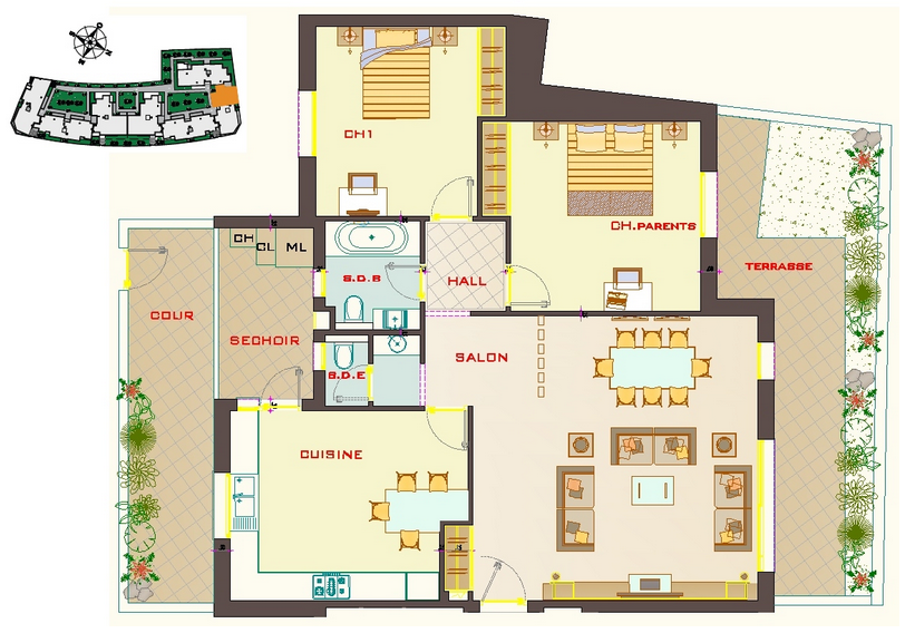 Niveau étage : RDC