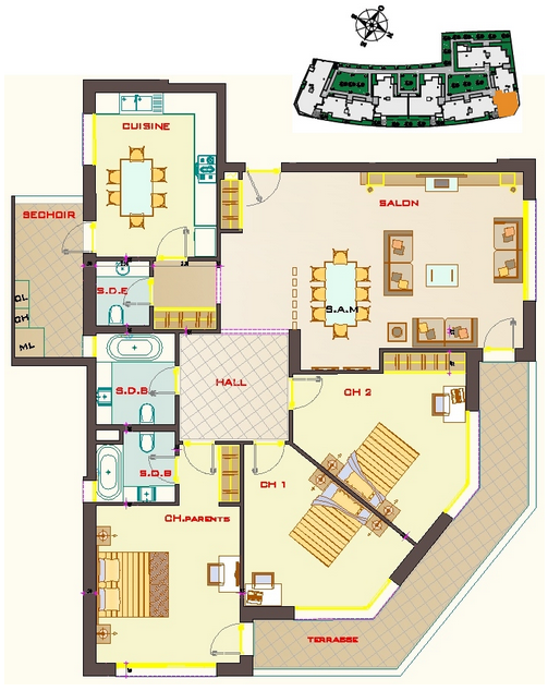 Niveau étage : 3 ème étage