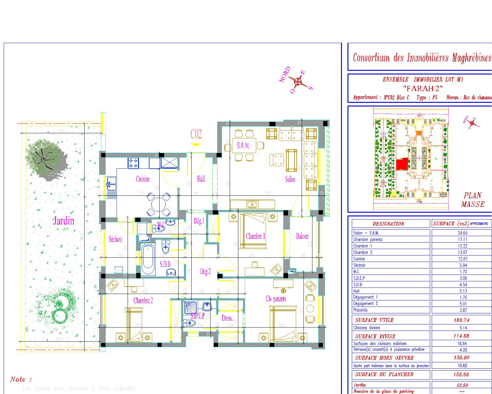 Surface Totale : 155.68 m²