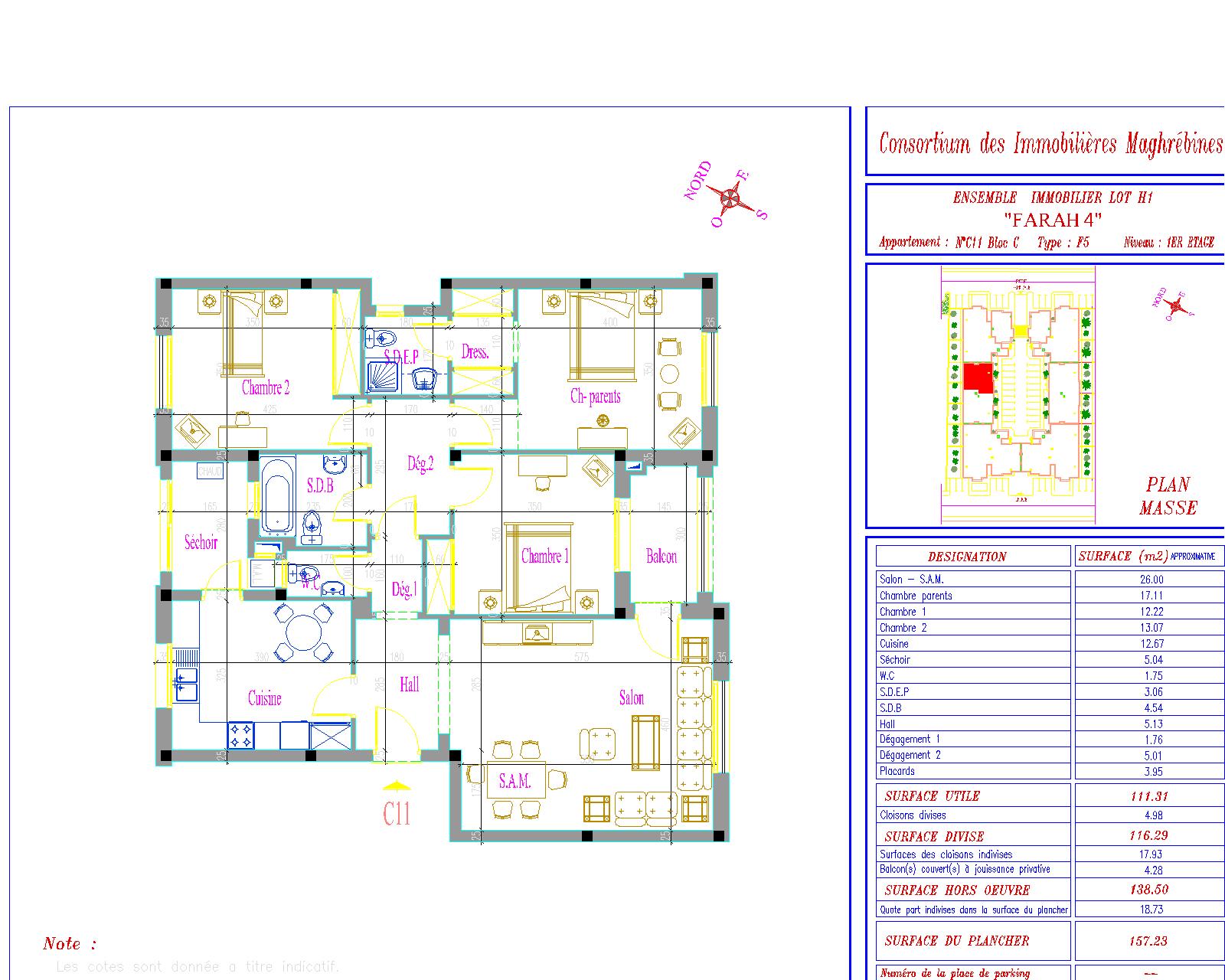 Surface Totale : 138 m²