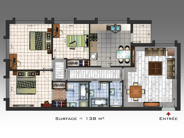 Surface Totale : 138 m²