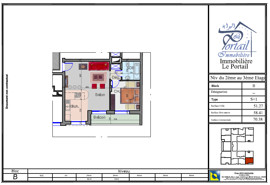 Surface Totale : 70.38 m²