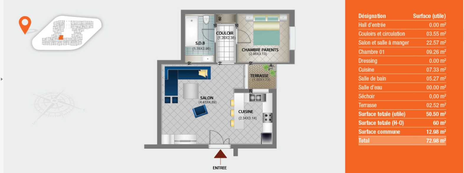 Surface Totale : 63 m²