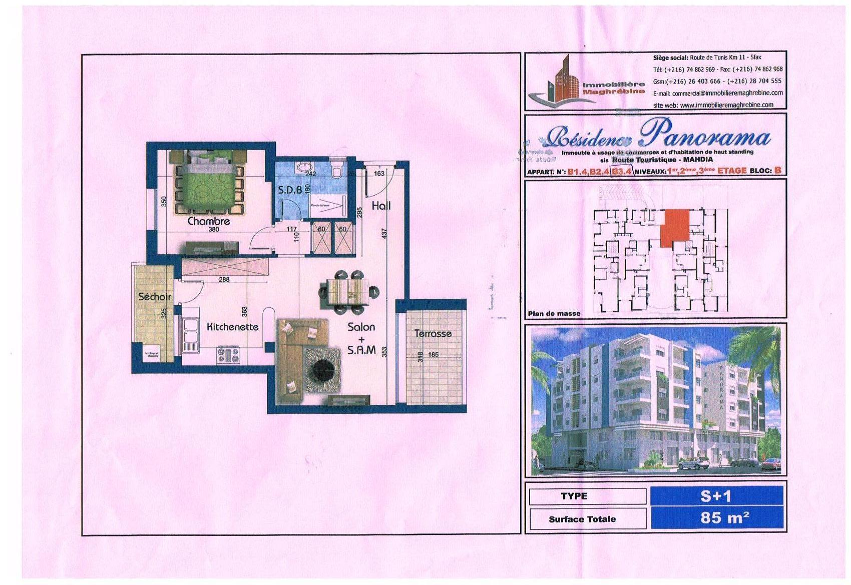 Surface Totale : 85 m²