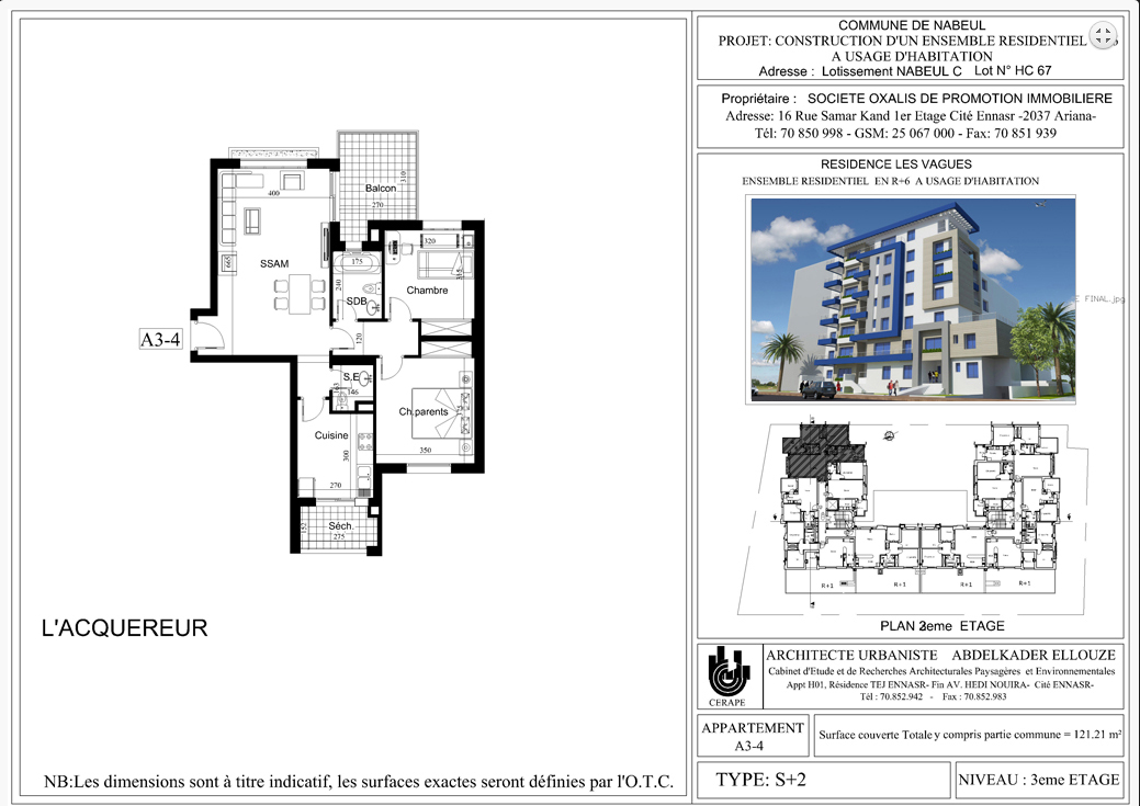 Surface Totale : 121.21 m²