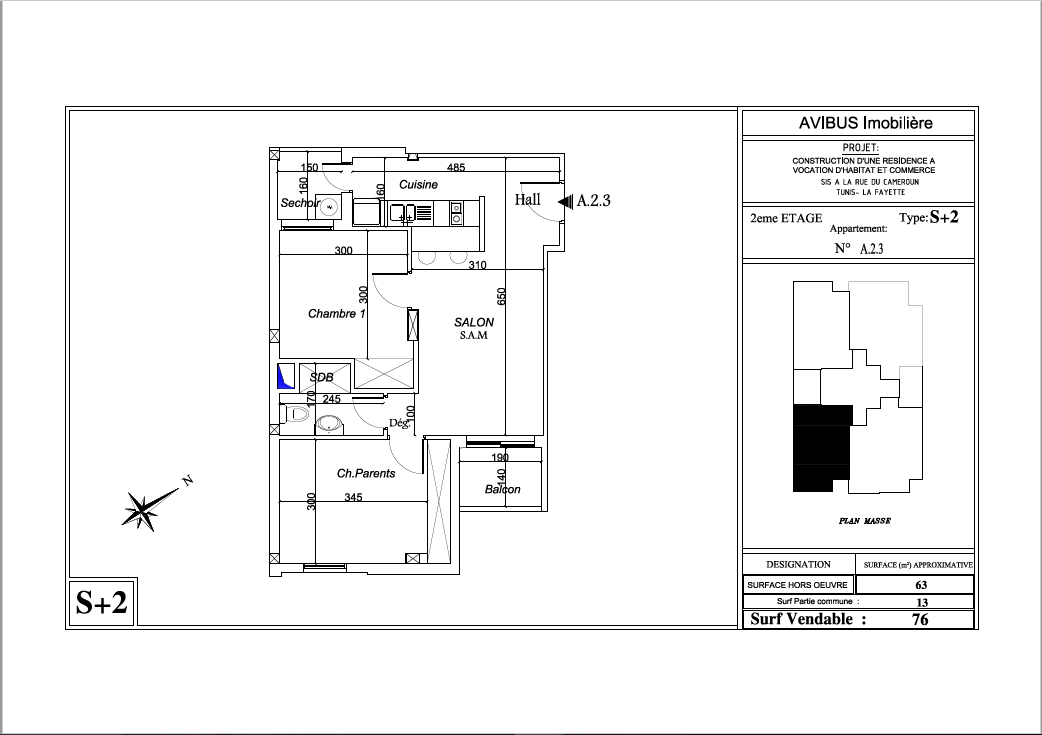 Surface Totale : 76 m²