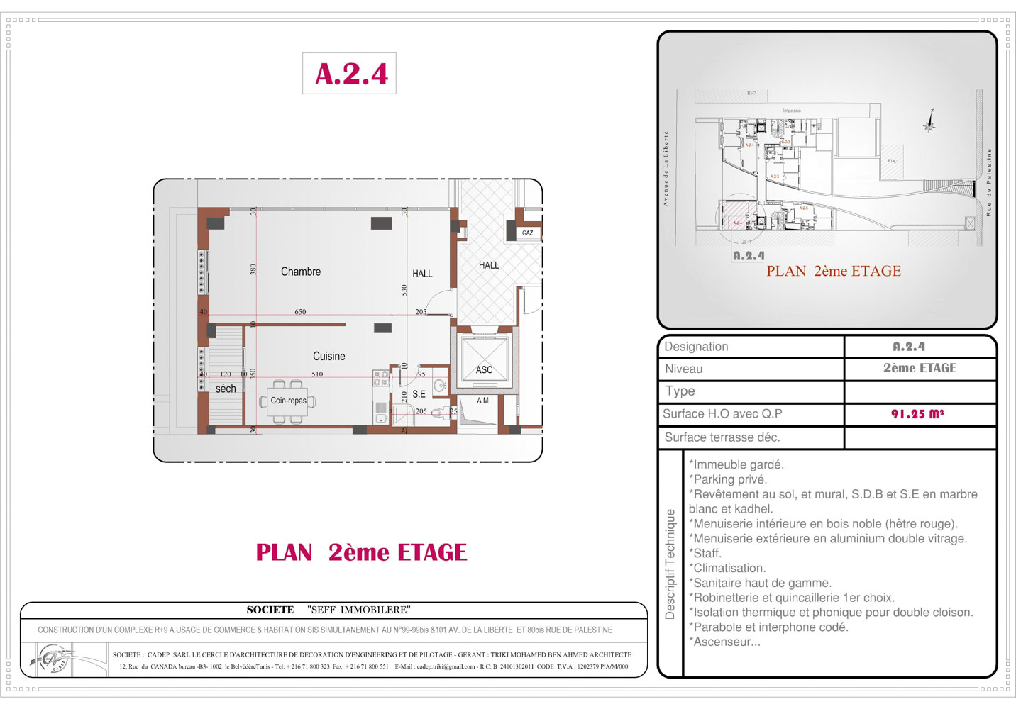 Surface Totale : 91,25 m²