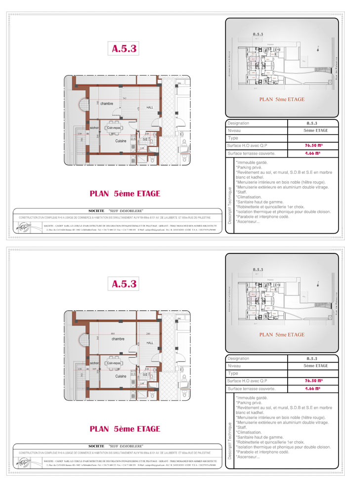 Niveau étage : 5ème Etage