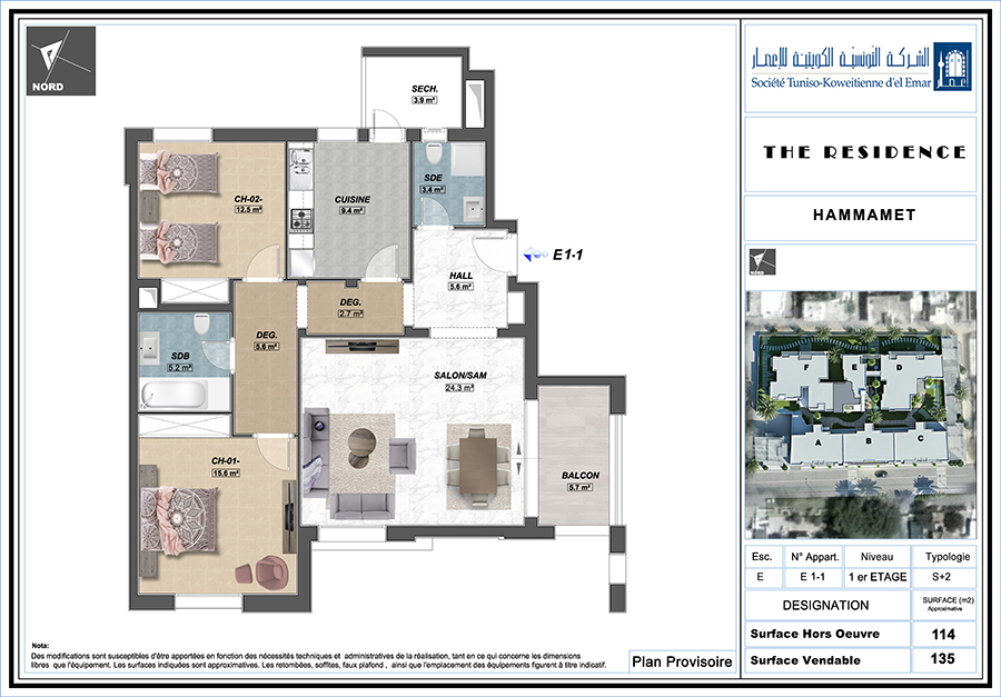 Surface Totale : 135 m²