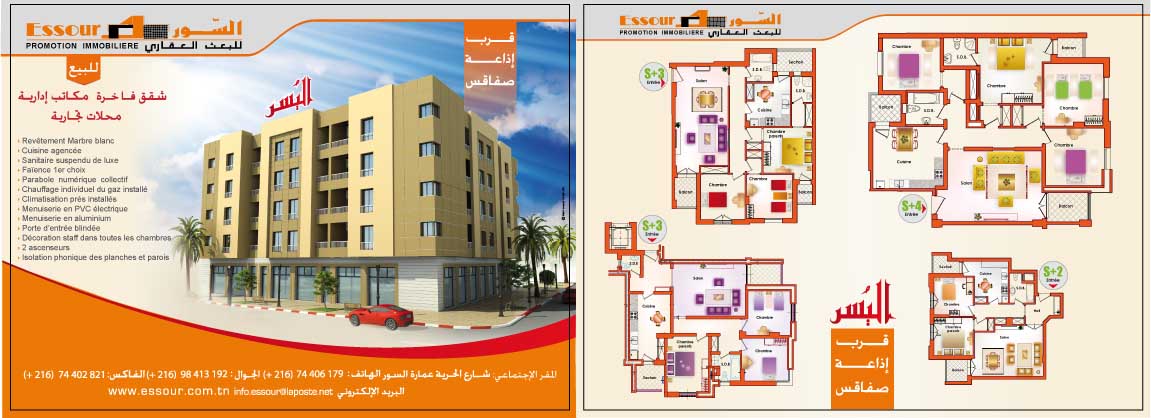 Avenue 7 Novembre immeuble ESSOUR E2 3003 Sfax - Tunisie 3003 SFAXTél : (216) - 74 406 179 - (+216) 98 413 192 - Fax : (216) - 74 402 821