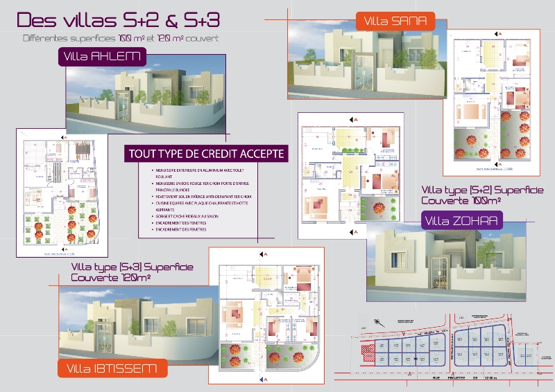 Projet « Yassmine » à Menzel Jemil situé dans un espace verdoyant à la cité de Mme Chasse à Menzel Jemil à 400 m de la forêt et de la plage « ERRIMEL ». C'est une zone résidentielle calme à 10 mn de la ville de Bizerte et à 25 mn de la capitale Tunis.