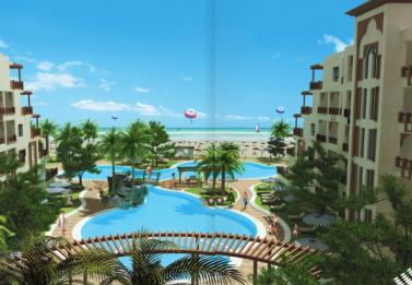 La première tranche à vendre comporte: * Appartements (Studio, S+1, S+2, S+3) * 3 piscines extérieures * Centre Spa avec une piscine couverte * Restaurants * Cafés * Café maure * Boutiques * Pizzeria * Ascenseurs * Réception * Parking…etc.