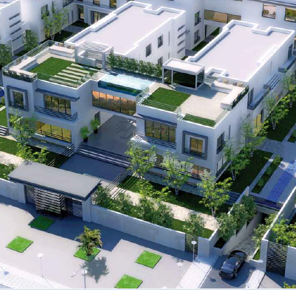 L'architecture est résolument moderne les lots sont dotés de grandes baies vitrées et de matériaux design et légers. Le contraste blancheur des murs et aluminium noir en synergie avec les ombres mettent en exergue la composition volumétrique du projet.
