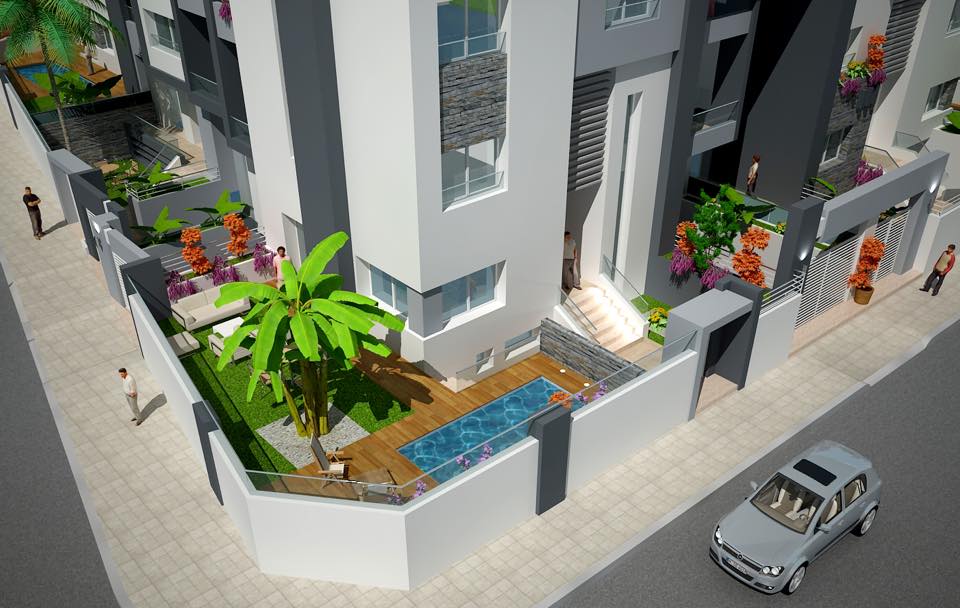 Le projet se compose de 6 Triplex et 4 Appartements de très haut standing avec jardins et garages privatifs, piscines à skimmer et cheminées aux salons.