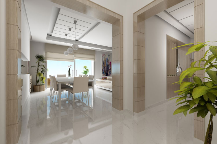 Entrées principale : marbre blanc Calacatta +câlpinage en marbre Botticino