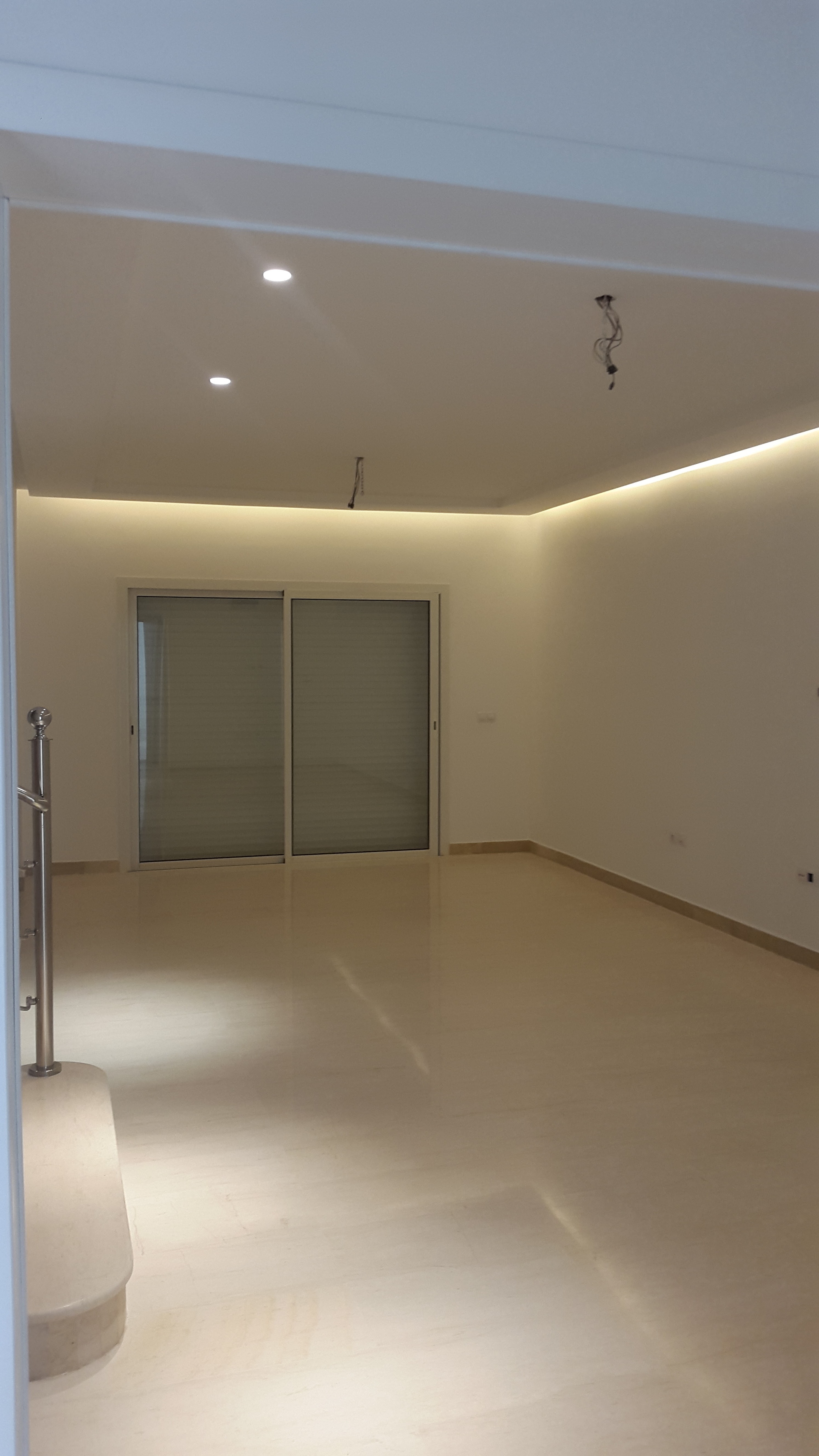 Fenêtres en aluminium, double vitrage, volets roulants électriques.