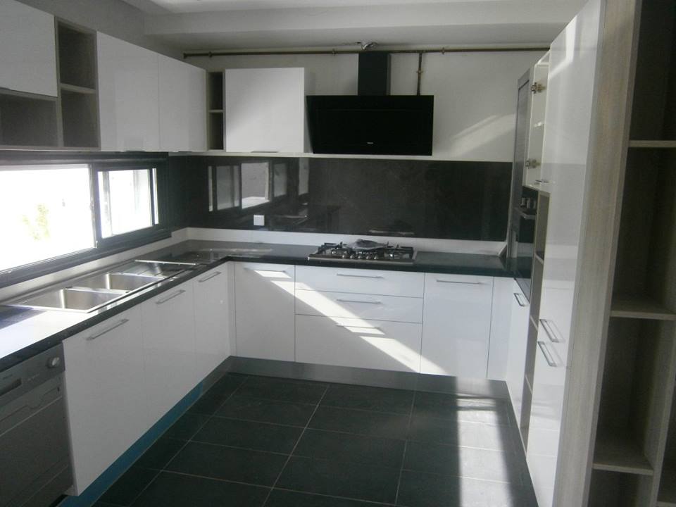 - Cuisines aménagés ; revêtements sol en grés noir importés.