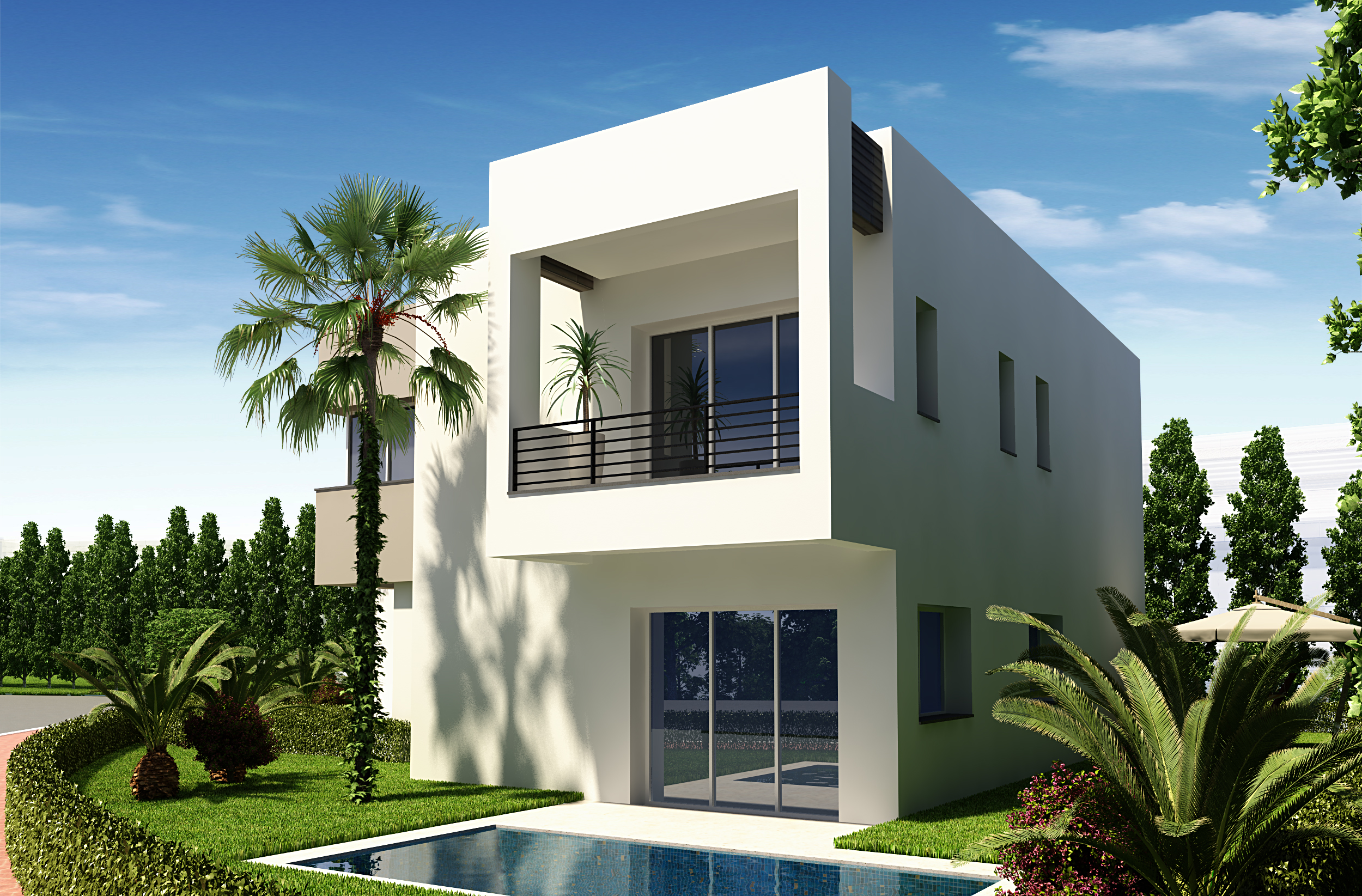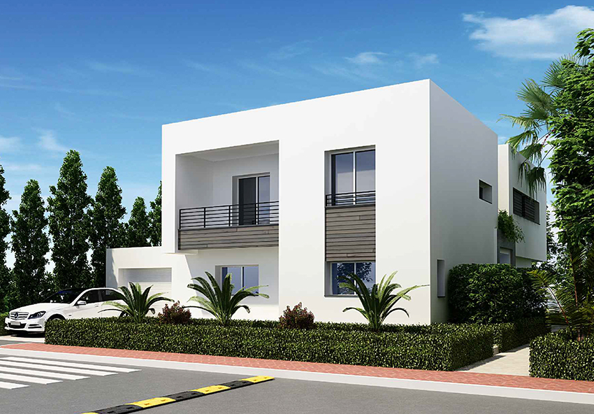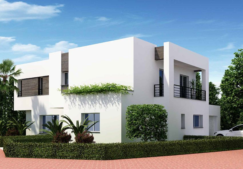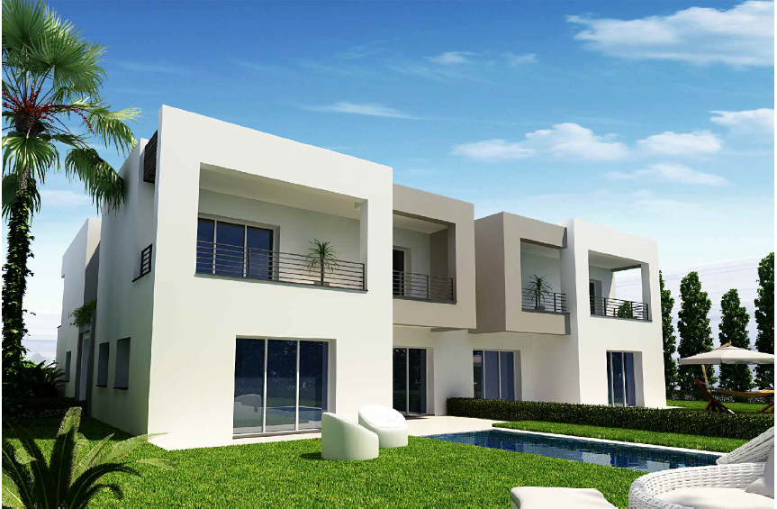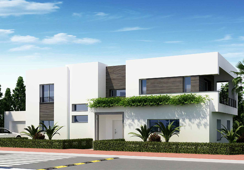 Les villas Jumelées ont des surfaces couvertes variant entre 277 et 329 m² et la surface du terrain varie entre 350 et 600 m².