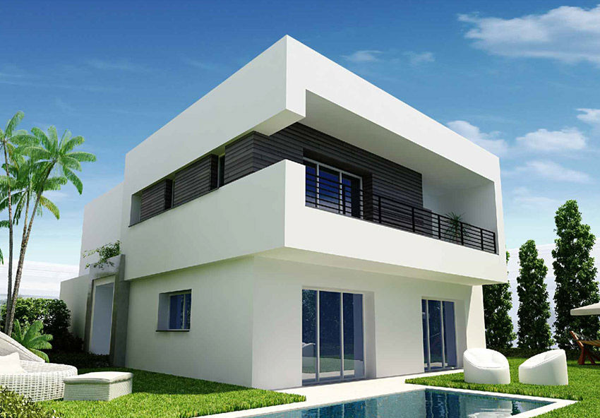 Les villas isolées ont des surfaces couvertes variant entre 325 et 550 m² et la surface du terrain varie entre 450 et 690 m².