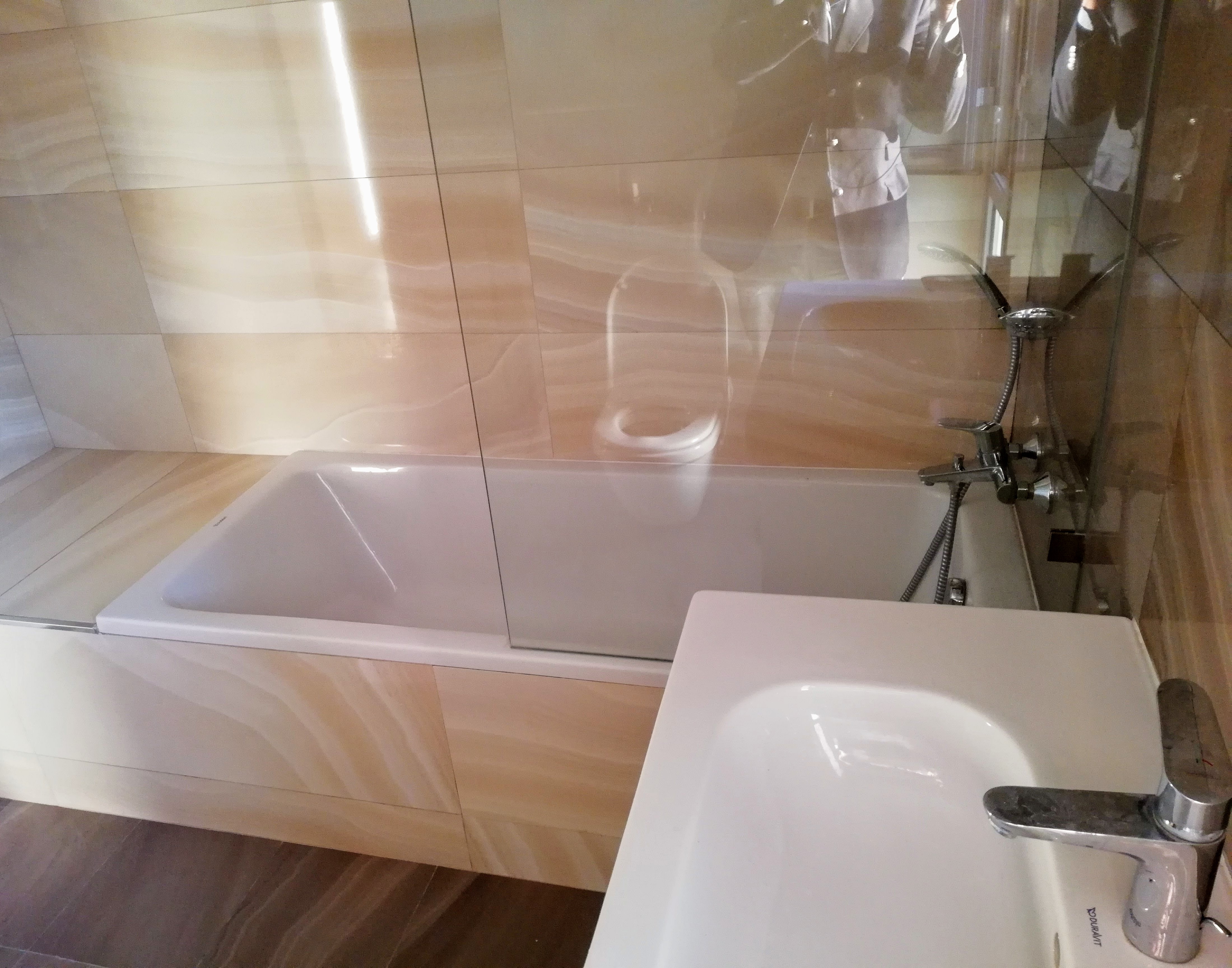 -Revêtement sol en marbre botticino pour le salon , grés effet parquet (gardenia) pour les chambres -Revêtement des SDB en faïence /grès DOREMAIL (gamme love)