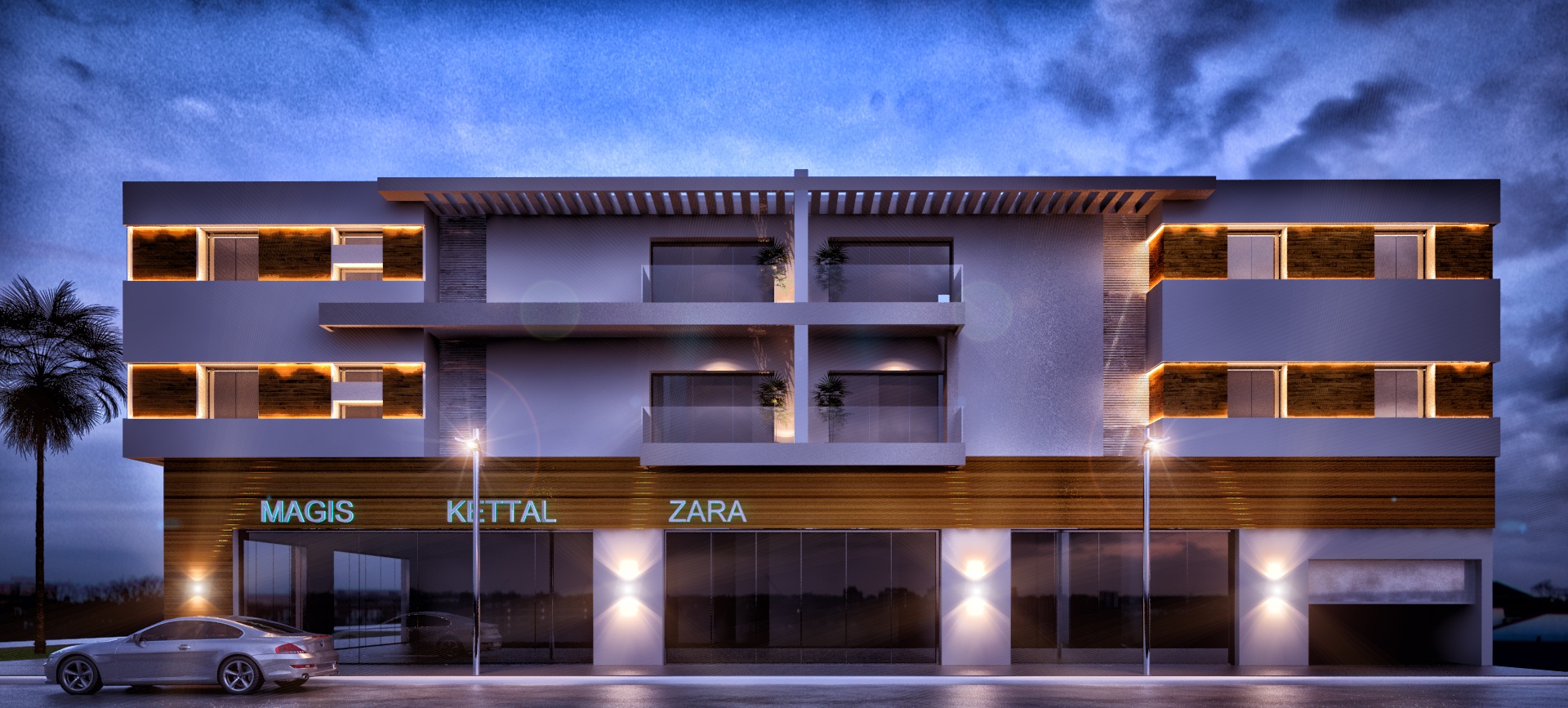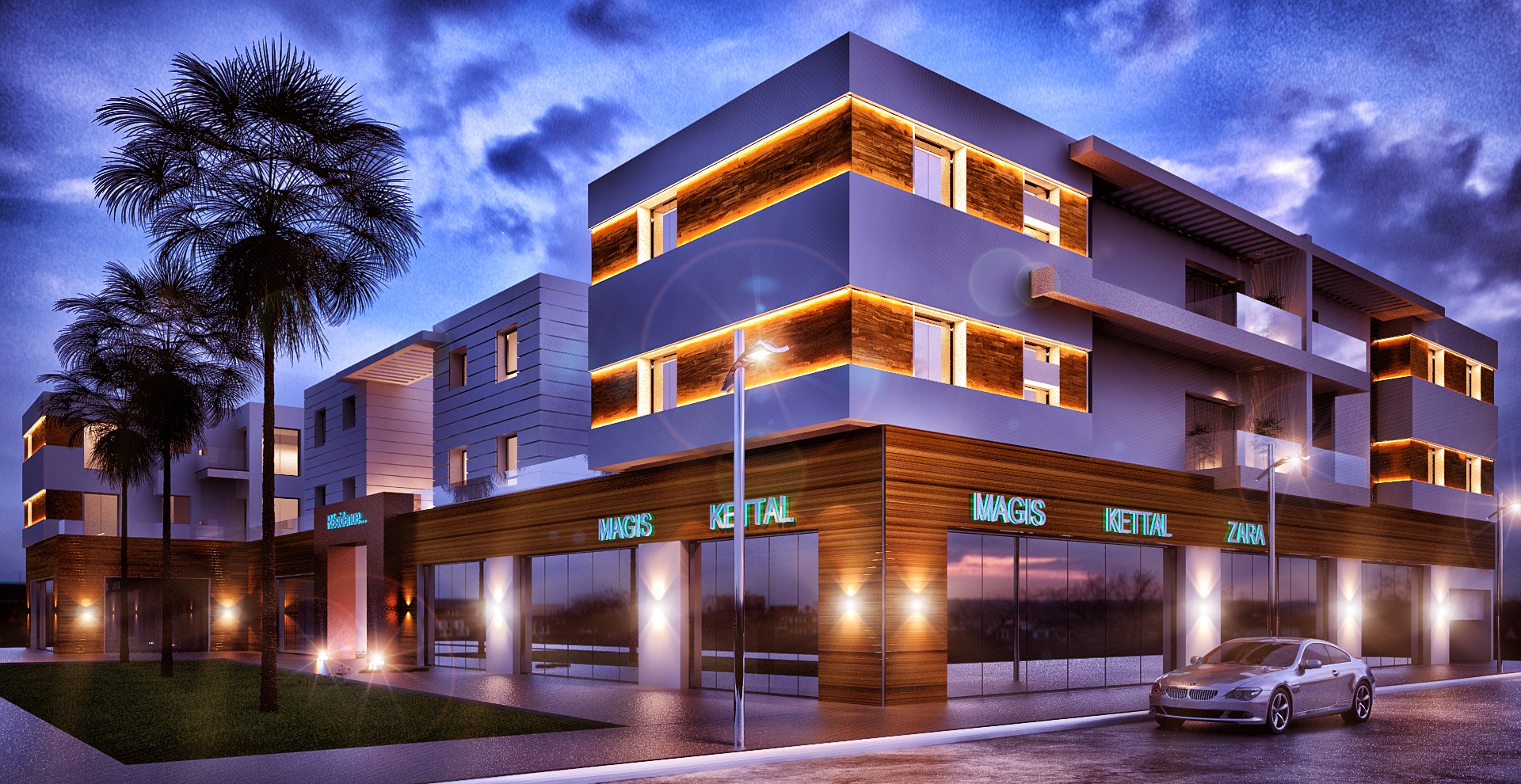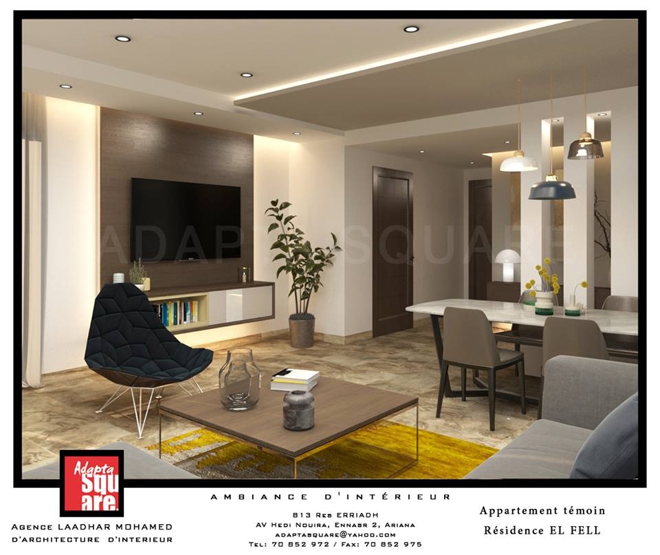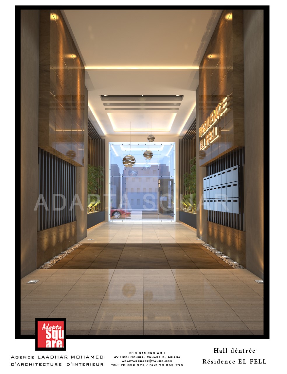 Résidence EL FELL est un ensemble résidentiel et commercial de haut standing réparti sur deux blocs de deux étages R+2, comporte: