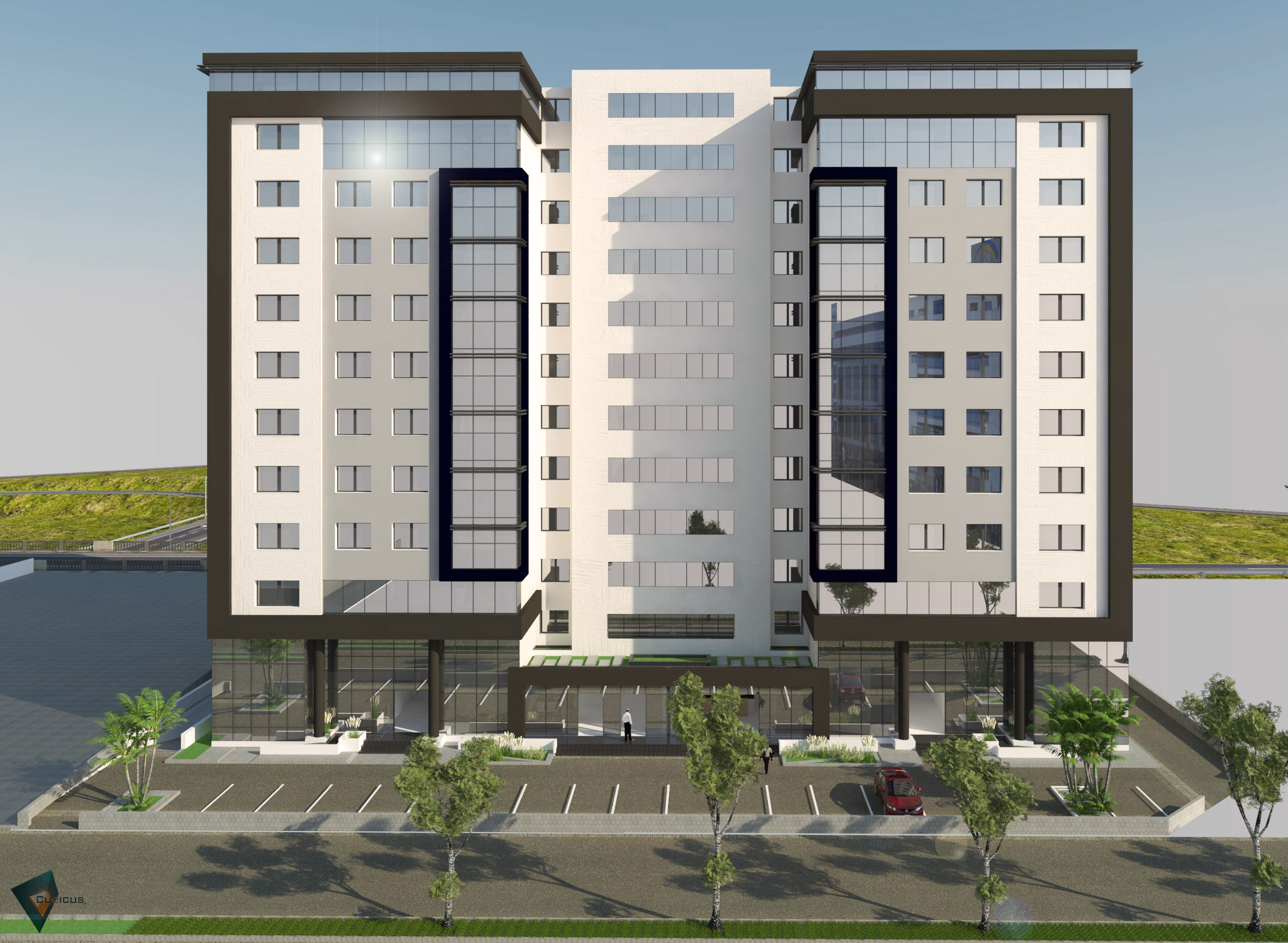 CORAL Building est un immeuble de très haut standing en R+11, bien situé au cœur du Centre Urbain Nord, mitoyen au CMF et pas loin de MARIOTT en cours de construction, et juste en face du Clinique CARTHAGENE,