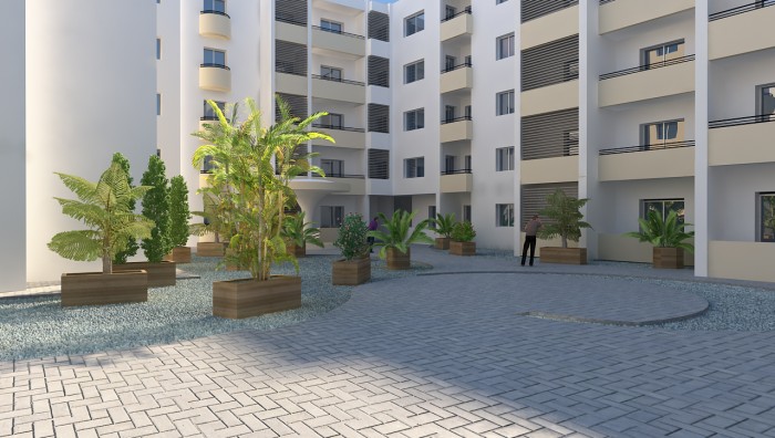 D'une architecture moderne et contemporaine, cette résidence offre au Rez-de-chaussée des bureaux et locaux commerciaux. Les appartements sont de type S+2, S+3 et S+4 et se situent dans 8 blocs de 4 niveaux desservis par ascenseurs.