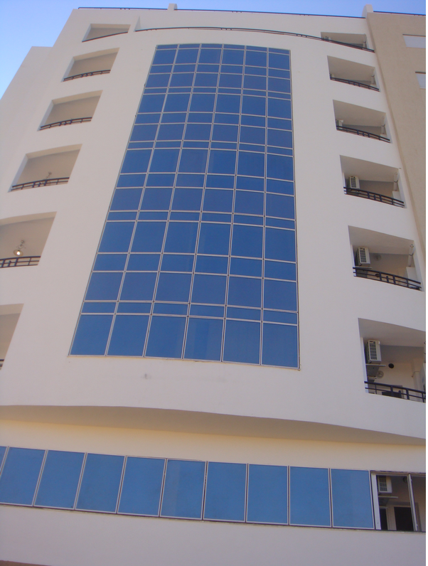 La résidence "CARTHAGE City" est dotée d'une architecture moderne. Elle est compsée d'un RDC commercial renfermant 7 magasins et de 10 étages répartis en 3 Blocs. -