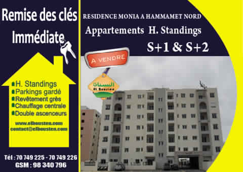 La Résidence AHMED est un immeuble de type R+6 d’une qualité de haut standing à Cité El Merazka Hammamet Gouvernorat de Nabeul ( Zone touristique) prés de la mer et le campus universitaire. -